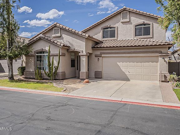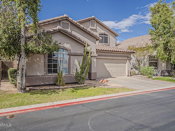 This 3 bed, 2.5 bath home has a long list of updates for both style and function. The exterior features band new, modern paint and a roof that was fully replaced in 2024. Inside you'll find stylish modern finishes in the kitchen with refinished cabinets and stunning quartz countertops. The main level features vaulted ceilings, an updated half-bath (2020) for guests and the master bedroom with an updated en-suite (2023) and two walk-in closets. The upstairs loft provides a spacious and convenient second space for entertainment. Additional features include a new A/C in 2020 and a new whole home filtration and water softener in 2023. Great location in the neighborhood across from the community pool and VERY convenient freeway access to the 202.