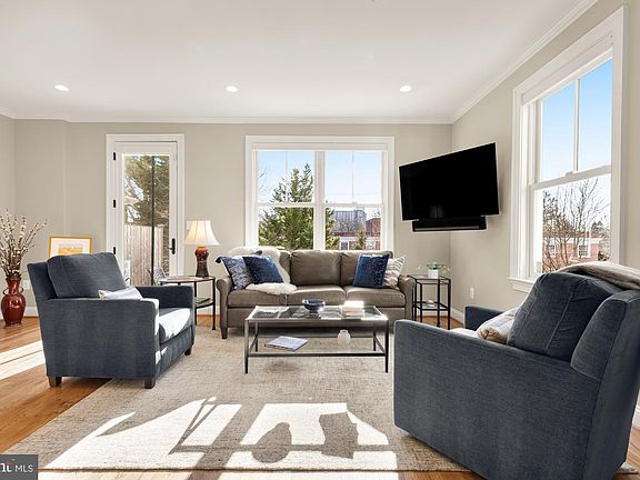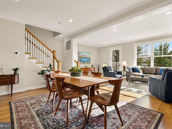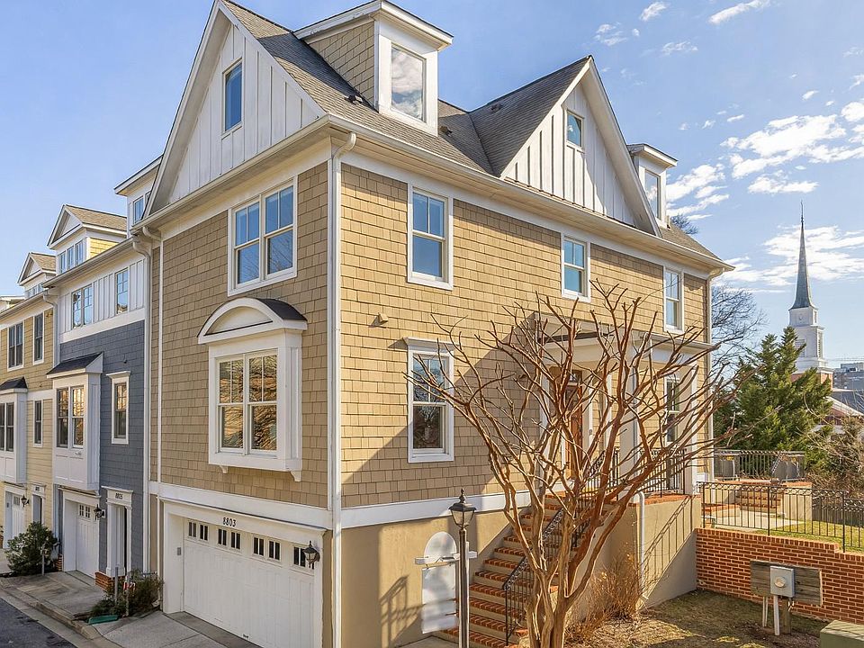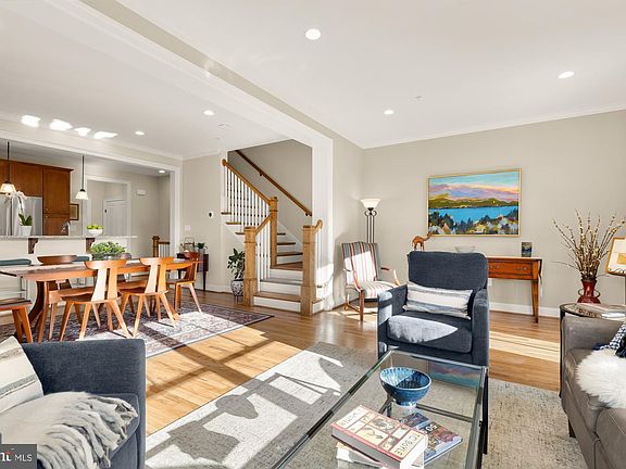 Welcome to this gorgeous, end-unit townhome in the sought after Woodside neighborhood of Silver Spring. You enter into a lovely main level living area that feels both expansive and intimate. The living room is large and bright, with gleaming hardwood floors, high ceilings, and big windows bathing the whole place in light. The living room is open and connected to a lovely dining area and a wonderful, well-designed, gourmet kitchen, featuring granite countertops, stainless steel appliances, under cabinet lighting, and counter seating. There is an attractive powder room and a good-sized home office (also bathed in sunlight) on this main level. Upstairs, you will find two bedrooms that both have ensuite bathrooms. The primary bedroom has a walk-in closet and the primary bath has a double vanity, a shower, and a soaking tub. Also on this second floor is full-sized laundry and several closets for storage. On the top level, there is a cute, charming bedroom, another full bathroom, and a great flexible space that could be an office or a playroom. The lower level of the house has a large fourth bedroom, perfect for guests or a workout space, plus the fourth full bathroom, and direct access to the two-car garage. The large, private deck area off the back of the house and the fenced-in side yard make this a very special townhome. You will love living in this beautiful, peaceful, tree-filled neighborhood, just steps away from all that Downtown Silver Spring has to offer!