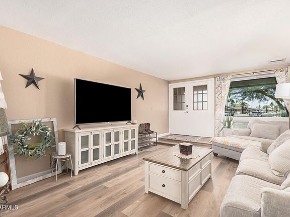 Discover the perfect blend of comfort and lifestyle in highly desirable Country Meadows! This renovated residence showcases over 2,200 sq.ft. of well-designed living with 4 generously sized bedrooms, 2 updated baths, a versatile bonus room, and a sparkling pool-- all nestled on a prime corner lot. Inside, you'll love the warm ambiance created by wood-look floors, a soothing neutral palette, and the inviting charm of a brick fireplace. The light-filled kitchen is a true gathering spot, featuring stainless steel appliances, classic wood cabinetry, granite tile counters, and a peninsula with bar seating ideal for everyday meals or weekend entertaining. The spacious primary suite provides a private retreat with a relaxing sitting area, direct patio access, a make-up vanity, and a beautifully updated ensuite complete with quartz countertops and a walk-in tiled shower. The flexible bonus room offers endless options--from a home office to a hobby space or game room. Step outside to one of the largest backyards in the neighborhood, thoughtfully designed for both fun and relaxation: enjoy a shimmering pool, shaded Ramada with BBQ, fire pit, play space, garden paths, and abundant storage. With nearby schools, parks, golf, and easy access to the Loop 101, this home truly offers it all.