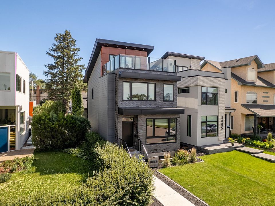 Stunning 2.5-storey home on iconic Strathearn Drive with incredible River Valley and Downtown views. Offering over 2,400 sq ft of living space, this net zero home features living space with an open & bright plan, designer finishes and premium upgrades. The kitchen has a large island, 2-tone cabinetry, granite counters & backsplash and premium Bosch appliances with gas range. The living/dining areas have designer lighting, fireplace, 9' ceilings & herringbone hardwood flooring. The open stairway leads you upstairs to the primary suite with walk-in closet & 5-piece ensuite with freestanding tub + separate shower. Add'l bedroom on this level, plus a full 4-piece bath & laundry. The 3rd-floor loft offers a custom bar & a stunning rooftop terrace with panoramic views. The finished basement with ICF construction has a large rec room, add'l bedroom & full bathroom. Enjoy the professional landscaping, patio for entertaining, EV ready dbl detached garage & solar panels. Close to great trails, park, schools & more.