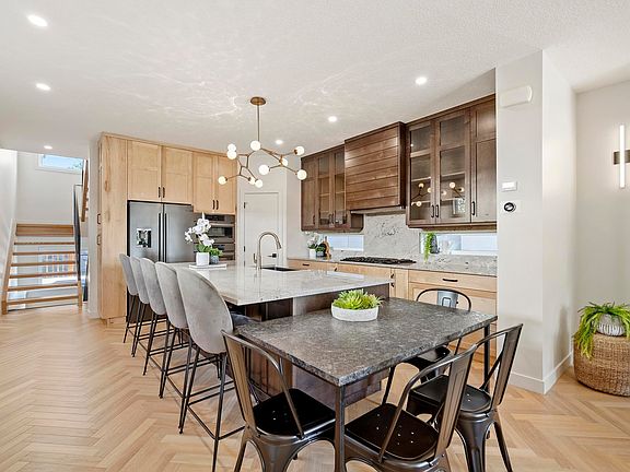 Open and bright planDesigner finishesPremium upgradesLarge islandGranite counters and backsplashHerringbone hardwood flooringLarge rec room