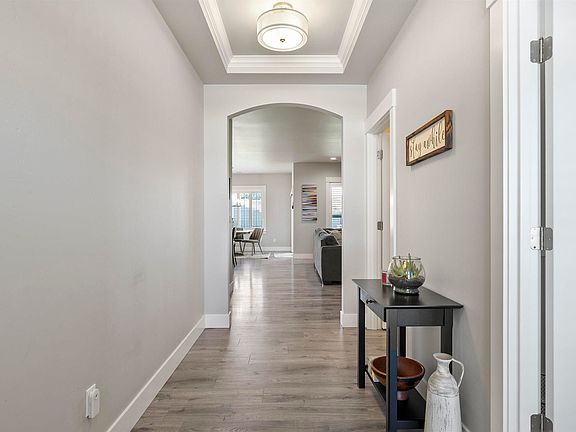 MLS# 286290 DRASTIC PRICE IMPROVEMENT TODAY! BELOW MARKET PRICING. Enveloped in luxury highly sought after The Ridge of Hansen Park. Better than buying new. 1 Level by Riverwood Homes, custom features w/ many upgrades. 5 Bd/3 Bath 3 car EXTRA deep garage plenty of room for large truck/storage or 4 cars. Custom kitchen w/ soft close cabinets lg pantry SS appliances, quartz countertops in kit, and bath. Solid wood flooring in kitchen dining room and primary bd. hall & entry. Tile in laundry and baths. Wide accessible hallways. Hand textured walls. Sq. corners. LRG Office/den can serve as a bedroom w/walk-in closet. Heaven on earth primary bath w/tile walls in primary shower, easy 2 clean. Lrg. soaking tub, HEATED FLOORS IN BATH! Dbl sinks. Luxurious Huge Exquisite Primary Suite very private indulge relaxation, big windows light & bright. Opposite of the house 3 more large bedrooms, full bath with tile. Modern gas FP. w/stone mantle. Covered patio prewired for fan/sound. Full wood shutters throughout home. Custom landscaped w/high end outdoor lighting. Perfect in A Cul- de Sac, corner lot. Big backyard, private. UGS. Concrete curbing. Perfectly maintained & loved. Plz remove your shoes. Call or text for more info. Aggressive price for all this home has!