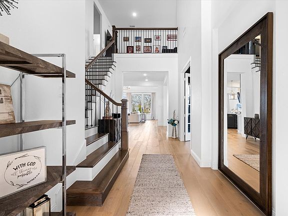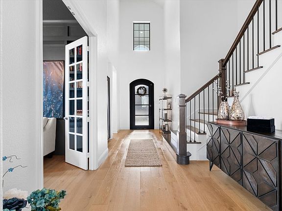 The Crown Jewel of Trinity Falls – Nestled on a serene, wooded creek lot adjacent to a picturesque park, this stately Drees custom home is a perfect blend of luxury and lifestyle. The striking exterior sets the tone for the elegance inside, where you’ll find a beautifully appointed home office with French doors and custom built-ins. The formal dining room and open-concept living area flow effortlessly together, making it easy to host everything from intimate dinners to lively gatherings. At the heart of the home lies a chef’s dream kitchen with quartzite countertops, a large island, double ovens, pot filler, 5-burner gas cooktop, microwave, built-in fridge, custom cabinets, beverage center, and spacious pantry. The family room impresses with soaring ceilings, a dramatic stone fireplace, and expansive windows showcasing tranquil creek views. Expansive glass sliders reveal a patio with a motorized screen—an exquisite setting for entertaining or al fresco dining beside the elegant fireplace and built-in grill. The primary suite features a sitting area, ensuite bath with marble vanities, soaking tub, oversized shower, & custom WI closet. Upstairs offers two additional bedroom suites, a game room, and a state-of-the-art media room. Wide-plank wood floors grace both levels. A generous laundry and mudroom lend added convenience. The oversized three-car garage offers epoxy floors, built-in shelving, a side door, and integrated sound. Residents of Trinity Falls enjoy resort-style amenities including pools, trails, parks, The Lodge fitness center, and an on-site elementary school. Just minutes away, historic downtown McKinney invites you to explore over 120 curated boutiques, fine dining establishments, and cultural attractions—effortlessly blending charm, sophistication, and accessibility. Now is your chance to enjoy the finest in resort-style living just minutes from historic downtown McKinney.