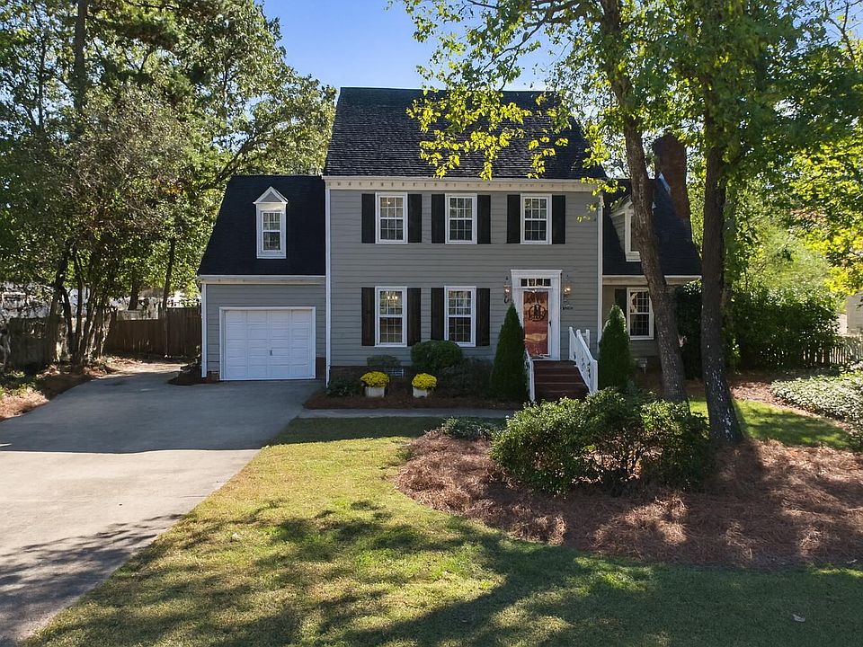 Charming Two-Story Home with Flexible Living Space and Large Fenced Yard; Discover this well-laid out home offering comfort, versatility, and room to grow. Sought after North Raleigh location with easy access to 540, Lafayette Village, Falls Pointe shopping center, and more. Inside, the main level features a large den with a cozy wood-burning fireplace plus an additional living area just off the entryway that provides extra space for entertaining or relaxing. The bright kitchen boasts new flooring and plenty of room for meal prep and dining. Step outside to enjoy the expansive fenced-in backyard with lush grass—ideal for kids, pets, and outdoor entertaining. Inside, you'll find three traditional bedrooms plus two additional rooms that can easily serve as extra bedrooms, a home office, or bonus spaces to fit your lifestyle. HVAC Replaced in June 2019; New roof 2018; White Oak hardwood floors in great condition underneath LVP in Foyer, Entryway Hall, and Front Living Room which could easily be expoed again. With its thoughtful layout and multiple living areas, this home combines function and warmth in a desirable setting.