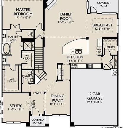 - One Living Area, Separate Dining Room, Eat-in Kitchen, Kitchen Island, Breakfast Bar, Pantry, Study/Library, Game Room, Utility Room Inside, High Ceilings, Open Floorplan, High Speed Internet, Master Downstairs, Ceiling Fan(s), Chandelier, Solid Counter Tops, Programmable Thermostat
