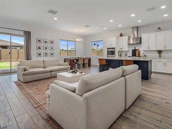 Welcome to your dream home in the sought-after Rovey Park community! This stunning single-level Hilary floor plan offers 4 spacious bedrooms, a versatile den/home office, 3 full bathrooms and a convenient powder room off the living space—providing the perfect combination of space, style, and comfort for families of all sizes.Thoughtfully designed and built in 2022, this home showcases an open-concept layout with no interior steps, ideal for both everyday living and entertaining. The inviting gathering room flows seamlessly into a modern island kitchen, complete with upgraded GE Café appliances, sleek finishes, and a bright dining area—perfect for family meals, celebrations, or game nights.Step through the sliding glass doors to a covered patio, creating an effortless indoor-outdoor living space for BBQs, playtime, or relaxing evenings under the stars while enjoying the activities in your grass yard. The private owner's suite is a serene retreat featuring a luxurious oversized walk-in shower, large dual sink vanity, and a generously sized walk-in closet.Additional highlights include a guest bedroom with ensuite bath ideal for visitors or multigenerational living. Two more bedrooms connected by a convenient Jack-and-Jill bathroom, dedicated den or study space perfect for working from home or remote learning and a corner lot location next to a common area, offering enhanced privacy with no neighbor on the east side of the home. Located in a vibrant and convenient area, you'll have easy access to Loop 101, and just minutes away from State Farm Stadium, the upcoming VAI Resort, Desert Diamond Casino, top-tier shopping, dining, and world-class entertainment. Don't miss the opportunity to make it yours!