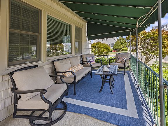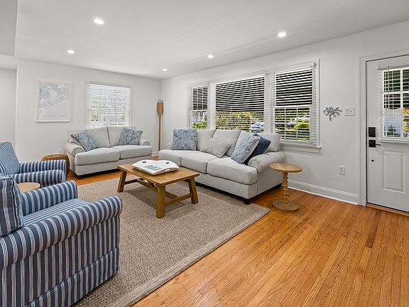 Enjoy morning coffee or evening cocktails on the beautiful front porch, perfect for relaxing after a day in the sun. Inside, you'll find new living room furniture, refinished hardwood floors, fresh paint, and central air thanks to a brand-new HVAC system. The chef's kitchen features quartz countertops, stainless steel appliances, and custom cabinetry ideal for entertaining.