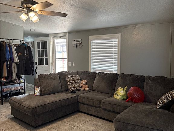 1.17 acres on corner lot. 3 bedroom, 2 bath mobile home that has been updated. Huge covered front porch and smaller back porch. Workshop with electricity. Nice kitchen with lots of white cabinets, vinyl plank flooring and granite tops. Split bedroom arrangement. Master has large walk in tiled shower. Large dining with decorative lighting and vinyl plank floors.