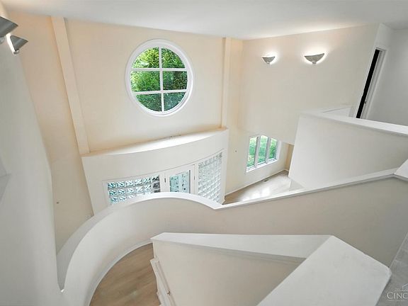 OPEN HOUSE Friday 9/26 from 5-7pm! An incredible opportunity awaits to restore this distinctive modern-contemporary home in Indian Hill. Nestled on a private 1.4-acre lightly wooded lot, this 6,000+ sqft residence showcases rare California redwood siding, striking architecture, including a one of a kind entry with a rounded staircase. The home offers 4 bedrooms, 4 full & 2 half baths, a spacious primary suite with a changing room & private balcony overlooking breathtaking views of the gunite pool and mature trees, and multiple outdoor patios perfect for entertaining. The massive basement provides a blank canvas with a full bath, bonus room, and workshop, adding versatile living and hobby space. The 3-car garage ensures ample storage. Outdoors, the inground pool is framed by elegant blue slate stone, creating a serene retreat. With its unique design, and generous proportions, this home presents a rare chance for a buyer to restore a true architectural gem to their specifications.
