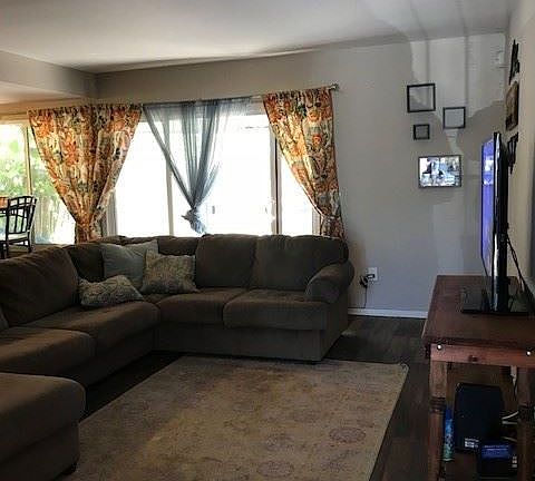 This lovely newly updated corner unit home features: 3 bedrooms and 2 baths with nearly 1,200 sq. ft of living space WITH Central AC!!. Spacious family room with sliding doors to back yard with lush landscape for privacy. Beautiful kitchen features stainless steel stove, dishwasher and hood range. Breakfast Nook area, Family room and kitchen has beautiful wood laminate flooring, spacious bedrooms with new carpet throughout, 1 car attached garage & driveway space for 2 cars. Great opportunity to live in a beautiful complex with inground swimming pool and playground right up the block! Equipment: Dryer, Washer Sewer: Sewer Connected Topography: LL