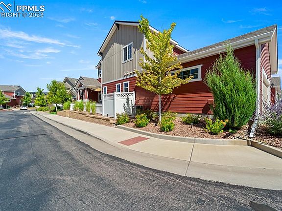Welcome to this beautiful 3 bedroom/2.5 bathroom townhouse in the desirable Wolf Ranch neighborhood in Colorado Springs. With accredited schools in District 20, this neighborhood is conveniently located off Powers Blvd and Research Parkway, close to shops, restaurants and entertainment. You'll enjoy many beautifully landscaped parks, a dog park, pool, recreation center, and even a lake in this sought after neighborhood. In the summer, enjoy outdoor concerts, food trucks, movie nights and community events at Gateway Park. This stunning corner unit offers an open floor plan giving you easy main level living with a relaxing master bedroom on the main floor, complete with an en-suite bathroom and walk in closet. The kitchen features Soft close cabinets and drawers, 42 inch kitchen cabinets with crown on top, quartz kitchen counters, stainless steel appliances, extended porch/patio, front gate, double sinks in master and guest bathrooms, spindle banisters for stairway, tile floors, and granite countertops. Walk up the beautiful staircase, and you'll come to 2 more spacious bedrooms, a full bathroom and linen closet. Enjoy the beautiful views of the Pikes Peak Mountain Range on the outdoor patio! This home comes with central air, washer and dryer, pantry, Under cabinet lighting in kitchen, plenty of professional shelving in garage, sunshade on porch. HOA allows pets. HOA includes Covers landscaping, outside street lights, snow removal outside fence. It also insures everything from the outside to the studs (roof, siding, etc.,). Don't miss this amazing townhouse, you'll love living here! Call Andre for your private showing.