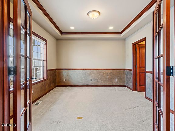 From grand entrances to high-end finishes, this home exudes luxury! The Apple Tree Community is more than just a neighborhood, it embodies effortless living. Indulge in the exclusive amenities - days spent by the community pool, playing a round of golf, or having dinner or drinks at the grill while enjoying the spectacular course views. Upon entry, an office/bedroom featuring stunning French doors and an attached 3/4 bath is located to the left. Across the hall the formal dining area is adorned with a custom wall wine rack, enhancing the sophisticated feel of the home. Follow into the main living space welcomed by vaulted ceilings, a gas fireplace, and arched entryways that seamlessly connect adjacent common areas. Discover pristine cherry hardwood floors in the kitchen and informal dining area, complemented by new high-end appliances, granite countertops, and canned lighting fixtures. The convenience of an eating bar and an expansive laundry/mudroom, providing access to the garage, adds practicality to daily living. Ascending to the upper level you'll find the 1,000 sq ft primary suite, a true sanctuary with a spa-like ensuite bathroom, an expansive walk-in closet, a double-sided fireplace connecting the bedroom, and an expansive balcony with fairway views. Entertain effortlessly on the paver-lined back patio, complete with an outdoor kitchen, gas fireplace, and captivating fairway views. The front exterior also has a paver-lined walkway and driveway, enhancing the overall curb appeal.