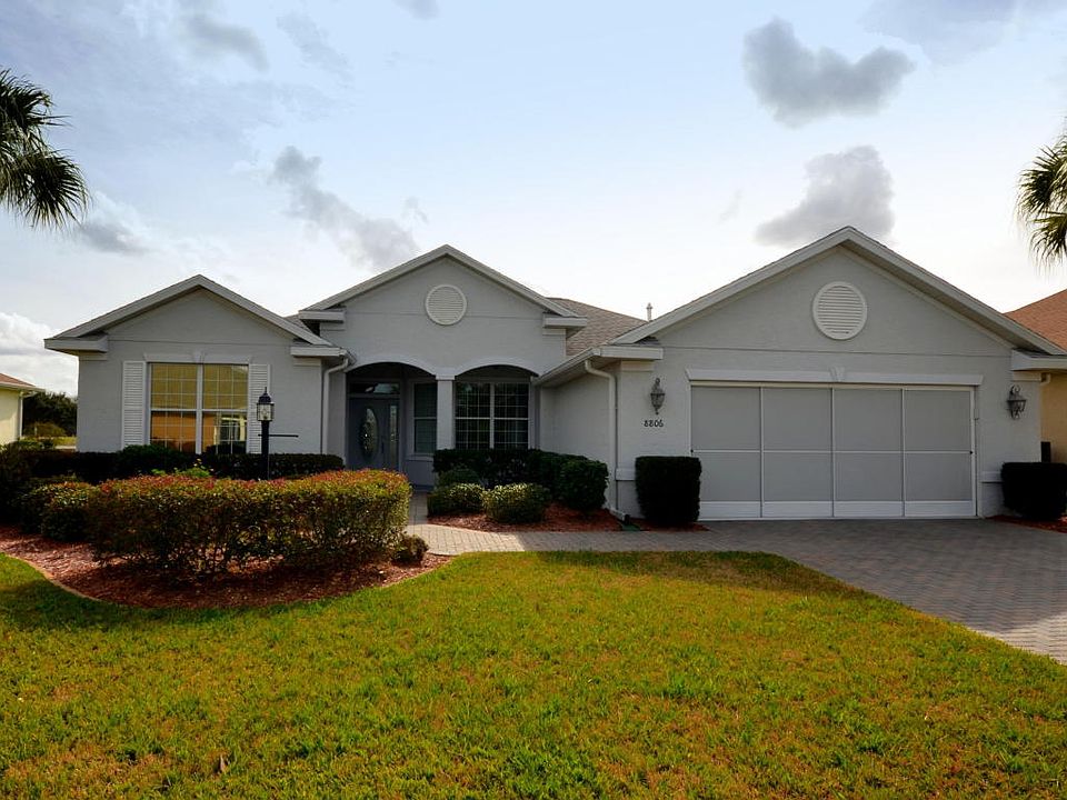 ON THE GOLF COURSE WITH GREAT VIEWS! This very nice Ayreshire model home is located in the much sought after gated 55+ Golf Community of Candler Hills. Home features 9'4" ceilings, neutral tile throughout main living areas, carpet in Master Bedroom and one Guest Bedroom, screened Lanai, water softener, 2-car Garage, pavers on the driveway and front walk, professional landscaping, and more. Upon entering the Foyer you find the formal Dining Room to your right, and forward is the Grand Room. A slider in the back of the Grand Room accesses the large Lanai under roof that features UV protective privacy/sun shades and expansive views of the golf course. To the right of the Grand Room is the kitchen which features Oak Cabinets, Corian countertops with