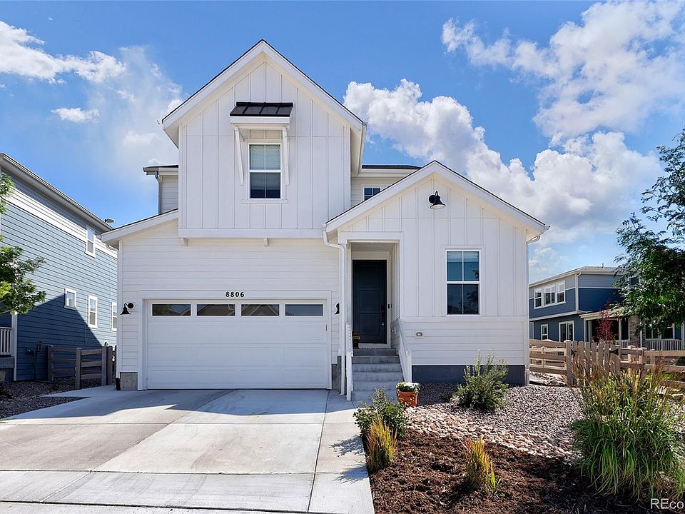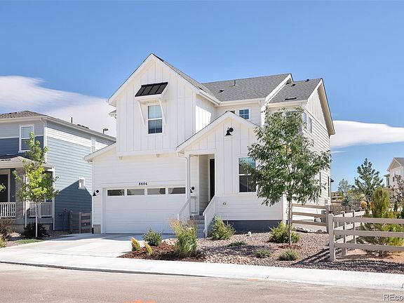 Nestled in the charming community of Sterling Ranch, this beautiful two story masterfully combines modern elegance w/ a warm ambiance. Spanning over 3,300 sqft, this spacious residence offers ample room for relaxation & entertaining. As you approach, you’ll be welcomed by a beautifully landscaped exterior & a cozy front porch. Upon entering, the open-concept design unfolds, seamlessly connecting the living areas. A main floor office off the entryway provides an ideal workspace with lovely neighborhood views, while the bright living room, featuring large windows, invites natural light into the space. The heart of the home is the gourmet kitchen, equipped w/ stainless steel appliances, generous counter space, a walk-in pantry, & sleek modern cabinetry. Perfect for everything from casual meals to dinner parties. The adjoining dining area is ideal for family gatherings & celebrations. Retreat to the tranquil primary suite, a spacious oasis complete with a luxurious 5-piece en-suite bathroom, featuring a soaking tub, dual sinks, & a walk-in shower. The additional bedrooms are generously sized, ensuring comfort & privacy, while the upper-floor laundry adds convenience to daily tasks. The unfinished basement presents a blank canvas for customization, complete w/ a rough-in bath & an egress window, allowing for the potential addition of another bedroom. Step outside to the backyard, featuring a beautifully landscaped yard, ample space for outdoor activities, a covered expanded patio, & a fire pit. Enjoy summer barbecues or peaceful evenings under the stars, all while benefiting from low-maintenance artificial grass. Sterling Ranch is a vibrant community set against the scenic foothills of Colorado, blending modern living w/ natural beauty. With extensive parks, trails, & open spaces, residents embrace an active lifestyle amidst stunning landscapes. Convenient access to shopping, dining, & highways ensures you enjoy the best of both suburban tranquility & urban convenience.