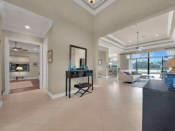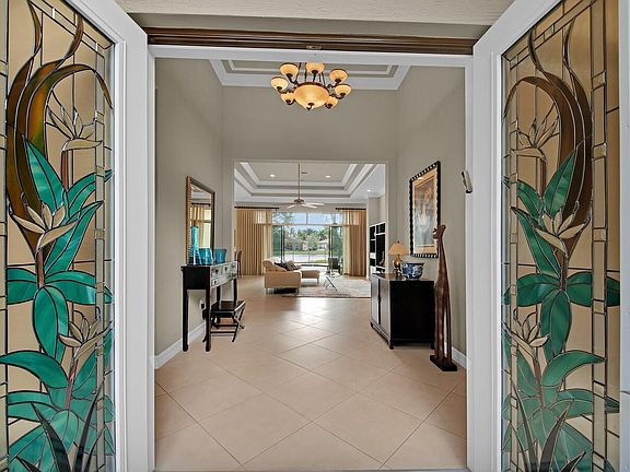 Dreams of a private tropical sanctuary are realized in this exquisite Victoria model home. The welcoming courtyard leads you through stained glass doors into a modern open floorplan, creating a feeling of tranquility and understated elegance. Relax or entertain in a great room with a wet bar, a formal dining room, a club room and a covered patio. Stunning dream kitchen with quartz countertops, tile backsplash, top of the line stainless steel appliances, a rare Amazonite center island, above and below cabinet lighting, pantries with pull-outs and a breakfast nook. Opulent master retreat features a door to the patio, a morning bar and custom his and hers walk-in closets. Master bath with dual sinks, soaking tub and a walk-in shower. Crown molding, coffered ceilings, custom window coverings, neutral flooring and a back-up generator are just a few of this home's highlights.