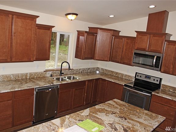 Freshly completed (May) new 4 bdrm home. Huge great room with ample wall space for the bigscreen. Upscale granite countertops, undermount sink and center kitchen island. Crown molding atop the generous cabinetry. Durable hardiplank style concrete siding and 30 yr arch comp roof. Large master bedrm features 5 piece master bath and walkin closet. Large utility room. Woodsey 1+ acre lot at the end of the cul-de-sac. No traffic! Home owners warranty! EZ commute to Olympia.