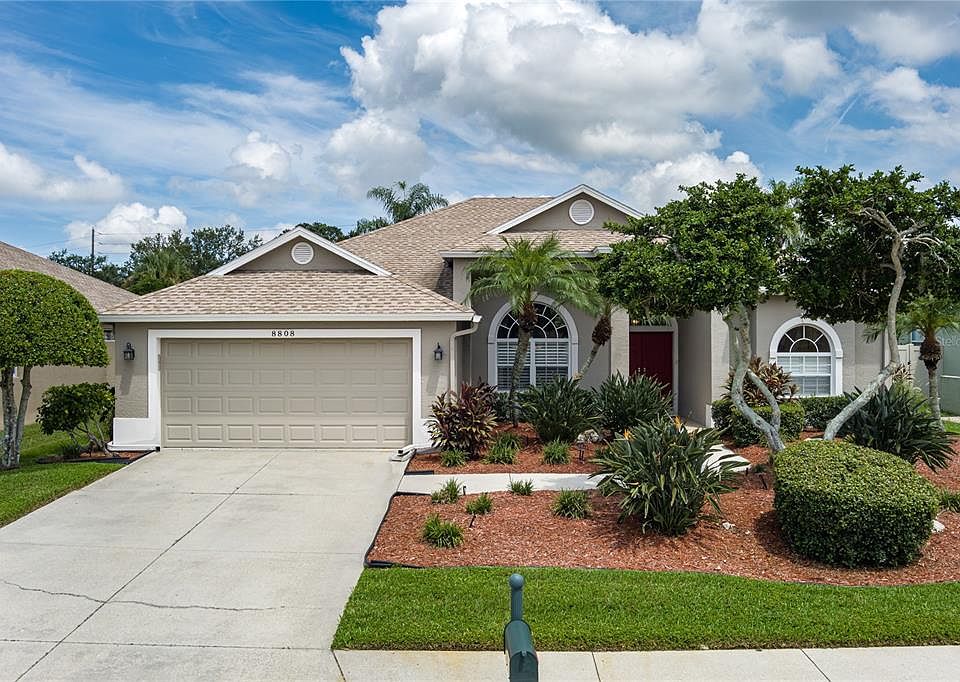 Exceptional value at a great new price! Your private Florida oasis awaits! Step into resort-style living with a heated pool and spa, spacious screened lanai, and a fully fenced backyard—perfect for relaxing, entertaining, or soaking up the sun year-round. Nestled in the sought-after Parkwood Lakes community, this beautifully maintained home reflects true pride of ownership. You’ll love the quiet streets, well-kept homes, and easy access to shopping, dining, and a variety of nearby medical offices and clinics. Recent upgrades bring peace of mind and added value, including a new roof (2020), new AC (2020), and a garage door rated for 145 mph winds. Inside, this 3-bedroom, 2-bath home offers 2,158 sq ft of well-designed space with crown molding, arched doorways, and vaulted ceilings. The chef’s kitchen features stainless steel appliances, granite countertops, a tile backsplash, breakfast bar, and a sunny café nook overlooking the pool. The open floor plan connects the kitchen to a spacious family room with built-ins, a cozy fireplace, and pocketing sliders for seamless indoor-outdoor living. The split-bedroom layout ensures privacy, with a large primary suite offering lanai access, a walk-in closet, and a spa-like bathroom complete with granite dual vanities, a garden tub, and separate shower. Parrish is a beautiful and growing community, and this home puts you just a short drive from the Gulf beaches, Sarasota’s vibrant arts scene, and within easy reach of Tampa, St. Pete, and Clearwater—combining style, comfort, and an unbeatable location.