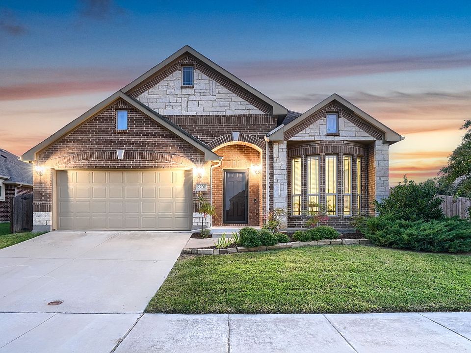 Exterior & Lot Features: Traditional stone & brick façade presents strong curb appeal. Spacious 2-car garage and a covered patio — perfect for outdoor lounging and entertaining. Large backyard with landscaping and sprinkler system, all on approximately 0.19 acres.