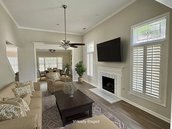 Special 100% financing available on this home from Community Mortgage!!! Beautiful home in Riverwood Farms - this home is right down the street from a lake entrance - very open floor plan with soaring ceilings down stairs - transom windows in LR - Kitchen with stainless appliances - Samsung refrigerator stays - granite counter tops - Primary BR has vaulted ceilings and ensuite with double sinks, bathtub and separate shower - Riverwood Farms has a 1 acre pond, a 3 acre lake and a 28 acre lake, there are 2.5 miles of walking trails as well.
