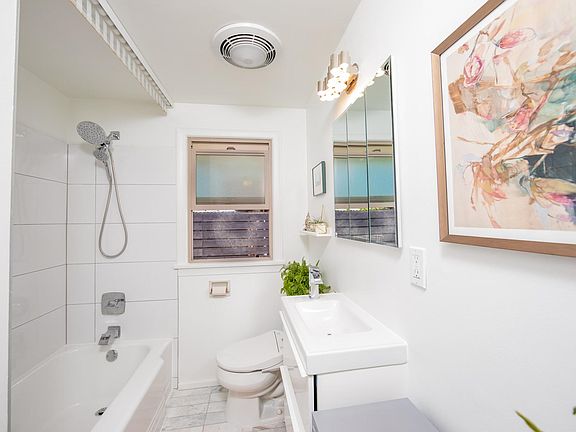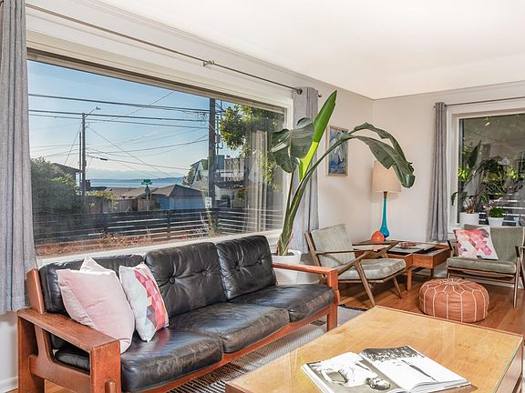Mid century across the street from the beach and Lincoln Park. Huge view of the Sound and mountains. Newly redone hardwood, gas fireplace, brand new kitchen with gas cooking, heated floors, newly redone bathroom and two nicely sized bedrooms. A/C-huge fenced yard, off street parking and walk to ammenities like donuts, coffee, Food trucks, restaurants and Wildwood market. easy commute out of West Seattle. No smoking of any kind. Utilities are renter costs. Downstairs is accessed from exterior door and is rented to a couple at the time with one cat.
