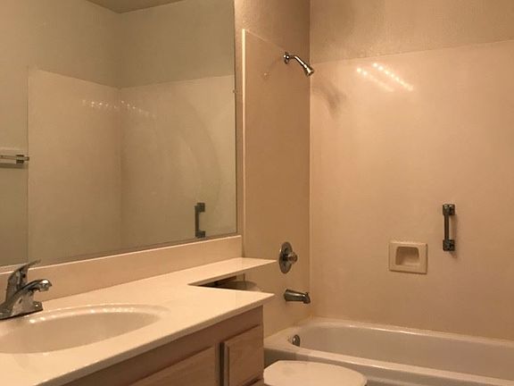 Full Bedroom & Bathroom Downstairs! - Low maintenance yards with ample driveway space and a 3 car garage. Brand new laminate flooring and carpet. One bedroom, full bathroom and laundry room downstairs. Separate living and family rooms. Kitchen features a separate breakfast nook. Master bedroom has two walk in closets and large bathroom with dual vanities, large tub, and shower. Small pet considered with an additional deposit. Tenant responsible for all utilities and landscaping maintenance. DIR: Hwy 99 to Laguna Blvd west, right on Big Horn, left on Meadowspring Dr, right on Hiddenspring Way. No Cats Allowed (RLNE5093719)