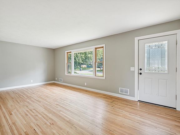 Charming 1955 remodeled rambler with modern updates! This 3-bedroom, 2-bathroom home includes an office/den, perfect for extra space. The bright living room on the main level features a large picture window, while the lower level offers a spacious family room for additional comfort. Updates include refinished hardwood floors, new carpet, new trim, freshly painted cabinets, and modern lighting fixtures. The kitchen shines with stainless steel appliances, and the home is freshly painted throughout. Outside, enjoy a 14x10 deck, fenced-in yard, and 1-stall garage.