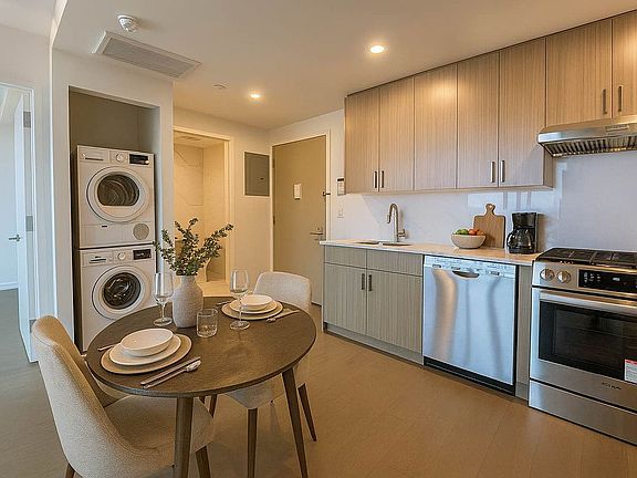 Floor-to-ceiling windowsBosch appliancesIn-unit washer and dryerHigh ceilingsPrivate balconyLed lightingDigital thermostat