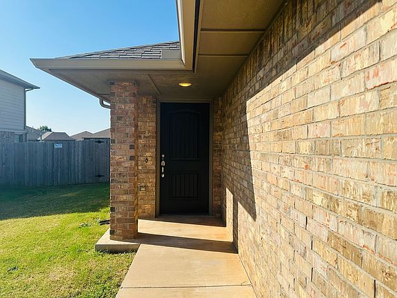 Not only in Mustang School District, but less than a mile from the Prairie View Elementary! Very spacious floor plan, with the kitchen wide open to a nice, large dining area & living area. Kitchen features beautiful granite countertops, dishwasher, garbage disposal, a sleek tile backsplash & a brand new refrigerator! Extra storage closet in the hallway, as well as a full-size laundry closet in the hallway too. Master bedroom with its own master bathroom, with a double sink vanity and huge, oversized walk-in closet. Sprinkler system and alarm system installed. Storm shelter in the garage & it also has a nice sized front yard & a fully fenced in back yard. This property is simply perfect inside & out! And it's move-in ready now