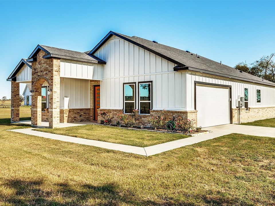 Unique home! $10,000 in seller concessions to help you with closings costs! NO HOA. This is the home of your dreams! Modern-Traditional Ranch Luxury stunning new-build home on a spacious 1-acre lot, 4 bedrooms, 2 bathrooms, designed with style and practicality in mind. The 2 car garage includes versatile workspaces. Inside, modern fixtures add a sleek, contemporary touch throughout the home. The living area is centered around a stunning fireplace, complemented by a warm wood mantle. The kitchen is a chef's dream with soft-close cabinets, a walk-in pantry and glass-front door, and a Herringbone tile adds timeless character to any design. Every tub and shower is tiled to the ceiling for a polished luxury finish. This new construction home was built with quality as the main priority. The engineered slab foundation has post tension cables and piers for maximum structural stability. Inside you will find an open floor plan with luxury wood flooring throughout the house, floor to ceiling tile in the bathrooms, as well as ceiling fans and can lights in each room. The kitchen boasts a stunning quartz and a stunning huge kitchen island, stainless steel appliances, and more! Designed with comfort and quality in mind, this home features 9 to 10-foot ceilings throughout, creating a light and open atmosphere. A thoughtfully designed split primary suite offers added privacy and comfort, while the living room showcases a cozy fireplace that makes it the perfect place to gather. The kitchen is both stylish and functional, with custom cabinets, elegant countertops, electric appliances, and a hidden walk-in pantry for seamless storage. Step out onto the covered back porch with build in grill, and enjoy tranquil views for your cook outs. The master bath boasts a luxurious soaking tub, with a huge shower! No neighbors directly behind and surrounded by nature, this property offers a rare blend of beauty and tranquility. Contact agent to schedule your showing and send your offer today!