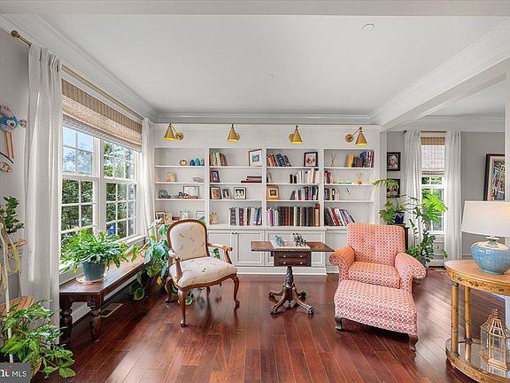 Welcome to an exquisitely conceived, 2012 custom-built home thoughtfully designed with equal consideration to beauty and function. 6 bedrooms, 4.5 baths across 3-levels offer a generously proportioned modern floor plan. Gorgeous natural light, and high quality finishes make this a space that is truly a joy to call home. MAIN LEVEL FEATURES: Stunning, 2-story reception area with transom and Palladian windows at front door; wide plank wood floors, recessed lighting and gorgeous millwork throughout; beautiful formal Living Room with custom built-ins and lighting, and custom window treatments; large Dining Room with chair rail; open Kitchen with walk-in Pantry, beautiful, white cabinets, neutral Silestone countertops, contrasting slate blue island with seating for 2, whimsical pendant lighting, stainless steel appliances; full wall, slate blue subway tile backsplash and eat-in area perfectly proportioned for an informal dining table. Expansive Great Room adjacent to the Kitchen, with a gas fireplace flanked by oversized windows, custom window treatments, ceiling fan and walk out to Trex deck with retractable awning. Large home Office/Bedroom #7 with French doors, ceiling fan, custom window treatments and double windows; discreetly tucked away, delightfully designed Powder Room; Mud Room with direct access to 2-car garage. UPPER LEVEL FEATURES : Dreamy Primary Suite with 9’ tray ceiling, ceiling fan, wood floors, stunning crown molding, beautiful light, and 3 views via double windows. Double door entry to Primary bath with ceramic tile flooring, wall length double vanity, large soaking tub, separate shower, water closet; 2 separate walk-in closets; Bedroom #2 with ceiling fan, walk-in closet and en suite Full Bath #2 with tub; Bedroom #3 with ceiling fan and a 13’ long closet; Bedroom #4 with ceiling fan and walk-in closet; Full Bath #3 with shower; large Laundry Room with new Washer and Dryer; linen closet. LOWER LEVEL FEATURES Full daylight lower-level Family Room with wet bar, white cabinetry, granite countertops and 2 beverage fridges; spectacular Media Room, with built-ins and 4k Theater equipment; Bedroom #5 with large window and walk-in closet; Bedroom #6/Gym with large window; Full Bath #4 with tub; large Storage/Utility Room; sliding doors to side patio. Trex deck with stairs down to fenced yard; Hardie-plank exterior; extensive perennial garden curated for nearly a decade; patio; Solar panels; UV system inside of Zone 2 air handler in attic; multiple yard drains around the rear and upper side yard; house downspouts drain to front and rear underground cisterns; whole house fan 2021; UV air unit 2020; AprilAire humidifier at lower unit 2021; Thompson Creek front and back doors; Washer and Dryer 2024; Solar panel system 2021; Roof 2022; membership eligibility to NCC Pool (tennis, pickleball and swim team). Walk to Chevy Chase Lake Town Square with Dining, Grocery and Conveniences, Crescent Trail, Rock Creek Park, and the future Purple Line, 2 minutes to 495, minutes to downtown Bethesda.