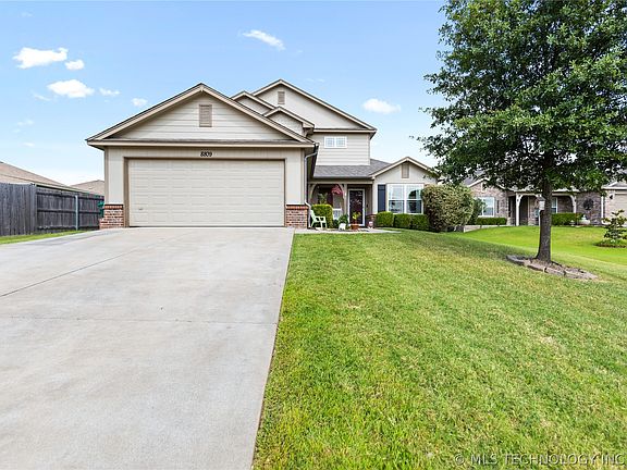 Welcome to this spacious 5-bedroom, 2.5-bathroom residence nestled in a tranquil neighborhood. This home offers an ideal blend of comfort and style, boasting generous living spaces perfect for both relaxation and entertainment. With fresh, new paint throughout the home, the main level features a beautifully appointed kitchen with modern appliances and ample counter space, flowing seamlessly into a cozy dining area and a bright, airy living room. The primary suite provides a serene retreat with its private ensuite bathroom, complete with a luxurious soaking tub and separate shower. You will also find another bedroom that would also make a great office. Upstairs, you'll find three well-appointed bedrooms, each offering ample closet space and a quaint flex space/hobby space. Outside, the expansive backyard offers an extended patio area and endless possibilities for outdoor activities and gatherings, while the attached garage and driveway provide convenient parking for multiple vehicles. Located in a quiet community with excellent schools and amenities nearby, this home presents a rare opportunity for those seeking space, comfort, and convenience. Sellers offering $6,000 for flooring allowance. Don't miss out on making this your new home sweet home!