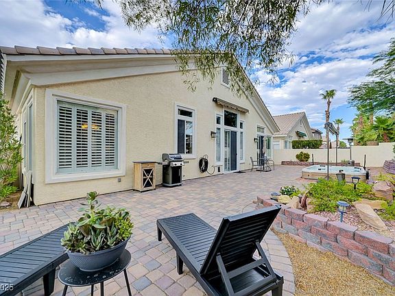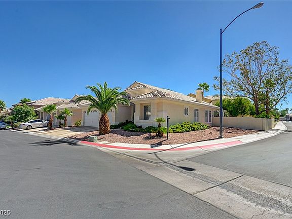 Welcome to the prestigious Guard-gated Granada Hills in the heart of Las Vegas! This single story 3 bedroom, 2 bathroom -12,000 Square foot CORNER LOT home offers a spacious living & family room with soaring ceilings, a cozy gas fireplace, and a formal dining room. Enjoy a remodeled primary suite with a stunning tub & shower, large walk-in closet, and backyard access. Kitchen boasts granite countertops, large island, stainless steel appliances & tile flooring throughout. Fresh interior paint, shutters, 8 foot doors, and a separate laundry with sink & cabinets. Oversized finished 3 car garage with epoxy floors, cabinets, overhead storage & full water treatment system. Major updates include new water heater (2021) & dual HVAC units (2022). Relax in the spacious backyard, paver stones & below-ground swim spa. Move-in ready and ideally located between Summerlin & Durango Station, just minutes from shopping, dining, outdoor activities & 15 minutes from the Las Vegas Strip! Must see today!