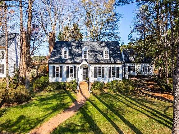 Cape Cod in charming North Raleigh's Sagewood Square featuring picturesque brick walls and gazebos on a beautiful cul-de sac. This home offers 3 large bedrooms, each with multiple closets and ensuite baths! One bedroom is on the main floor, could be generational living! The homey kitchen opens to the dining and features solid wood cabinets, granite counters, and a marble island, a sitting room or breakfast nook. The large family room offers a log fireplace as well as French doors opening to the screened porch. Step out to the private backyard oasis that features the screened porch, a massive paver patio, perfect for entertaining or firepit nights! Artificial turf, landscape lighting, and a playset with rubber mulch (optional to remain). Minimal upkeep effort~ Detached 2-car garage with shared drive. Extra parking pad out front Luxuries include marble in the master bath; his and hers walk-in master closets; hardwoods and crown moldings on the first floor; Nest Wi-Fi thermostats with remote sensors; and Ring video doorbell plus motion-sensor video floodlights. Updates since 2019 include a new roof, water heater, Trane variable-speed HVAC systems upstairs and down (with new ductwork), exterior paint, new gutters with guards, and new kitchen appliances. Two full bathrooms and the backyard have been renovated. Plumbing supply lines have been replaced with PEX, and the crawl space has been encapsulated with a commercial-grade dehumidifier. HOA dues cover maintenance of parking pads, driveways, brick walls, gazebos, and weekly lawn service, aeration, seeding, and fertilizer. Sagewood Square owners are not required but may join Summerfield North Swim and Racquet Club and the Summerfield North Neighborhood Association, which hosts events such as Christmas luminaries, neighborhood yard sales, and family events like pool parties, sleigh rides, and a Halloween block party. You will love this charming neighborhood close to highways schools and all Raleigh has to offer