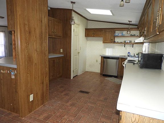 This home has new laminate flooring with wood burning fireplace in living room. Wide open concept. Kitchen has oak cabinets, new stainless dishwasher. Master bedroom has new flooring and skylight. Master bathroom has been redone. Has new sink, vanity, toilet, ceiling fan and flooring. There is plenty of storage. 2 car garage & shed. Generator in backyard.