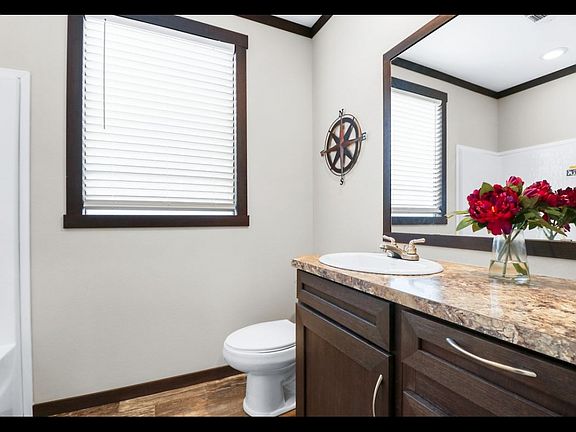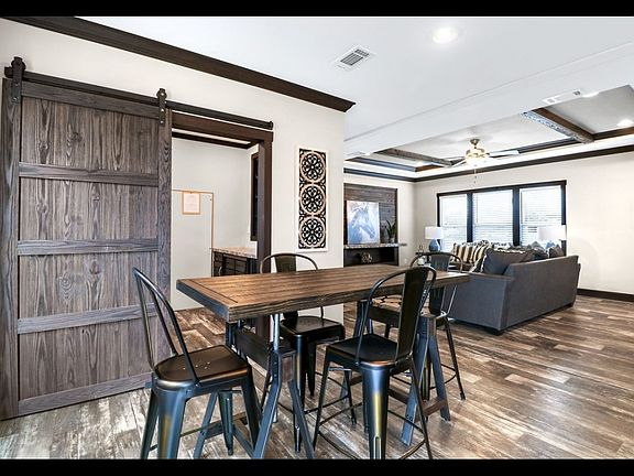 3-bedroom, 2-bath manufactured home, situated on a desirable corner lot, offers a perfect blend of comfort and functionality. The spacious primary bath features a beautifully tiled shower, separate tub, and dual vanities, providing a relaxing retreat. Each bedroom comes with a walk-in closet, offering ample storage space. The laundry room is a standout, with stylish barn doors and additional space that can be used for a craft area or office space. This home is designed for convenience and modern living. Don't miss the chance to make this wonderful home yours!