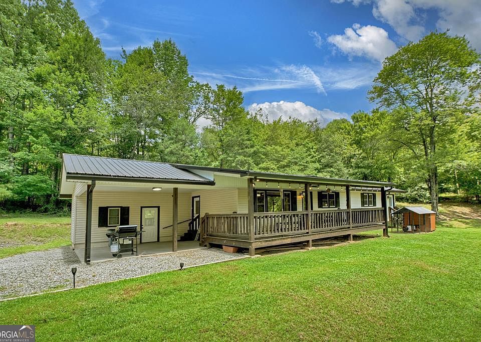 Creek-front, furnished, and income-ready-this charming home plus RV guest suite sits just minutes from downtown Blue Ridge, Lake Blue Ridge, the Toccoa River, and the Aska Adventure Area's hiking and biking trails. Tucked on 1.72 wooded acres with private creek frontage, it offers both full-time living comfort and excellent rental potential. Meticulously maintained and fully furnished, it's truly turnkey-ready to move in or begin renting immediately. The main home features a light-filled, open layout that flows into a well-appointed kitchen with solid-surface countertops, stainless steel appliances, custom cabinetry, and a breakfast bar perfect for entertaining. High-speed ETC wireless internet supports work-from-home and streaming with ease. The primary suite offers modern finishes, an ensuite bath, and a walk-in closet with direct access to the laundry room. Two additional bedrooms share an updated full bath, and a bonus room provides flexibility for an office, media space, or extra sleeping area. The fully plumbed RV suite includes two additional bedrooms, one bath, a full kitchen, fireplace, exterior fridge, and dedicated hookups-ideal for guests, extended family, or an additional income stream. Step outside to an expansive covered porch overlooking a flat, grassy creekside yard-perfect for a firepit, pavilion, games, or outdoor gatherings. Native hardwoods, stone pathways, and the peaceful sound of the flowing creek create a relaxing mountain setting that feels like a true escape. Located just 2.1 miles from Blue Ridge's restaurants, boutiques, breweries, and seasonal festivals, this property delivers privacy while keeping you close to it all. A rare opportunity for low-maintenance living, rental income, or a mountain retreat you can truly enjoy. Schedule your private tour and come see your mountain sanctuary-it's even better in person.