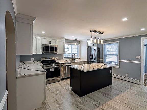 Welcome Home! This newly renovated ranch has it all! This home boasts a gorgeous kitchen with quartz countertops, an island with a wine cooler, amazing light fixtures that compliment the brand new stainless steel appliances. An open floor plan in the kitchen walks into a spacious living room with pristine gleaming hardwood floors throughout the main floor with updated recess lighting through the entire home. This picturesque home comes with 2-3 bedrooms with 2 full bathrooms that have been completely updated. On the main floor off from the kitchen is also a mud room and an office/work space with French doors. The garage is very spacious and has a brand new garage door. The attic is a pull down and completely open and has tons of possibilities. The lower level is finished and there is also a spacious laundry room, mechanics room, and extra storage space. The backyard you will find your own paradise oasis! The enclosed backyard has new vinyl fencing, a shed that has been updated as a potential pool house that has it's own recess lighting and flooring. The beautiful outdoor deck walks out to an awesome inground swimming pool with a liner that has been updated just three years ago. This house is a true gem and will not last!!