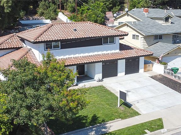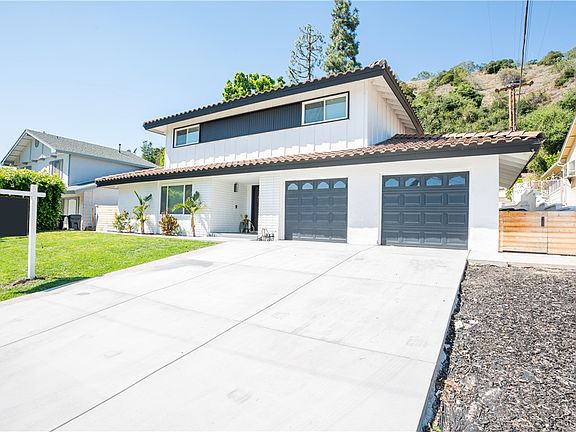 SPACIOUS TRI-LEVEL Mid-Century home located in a quite neighborhood surrounded with lush mature trees, sitting at the foothills of the San Gabriel mountains near parks and hiking trails. Enjoy a relaxing country feel with no neighbors behind your huge lot. This three bedroom home boasts over 2,000 square feet of living space with tons of natural light. As you enter the foyer, to the left you will find a large family room or formal living room and with an added reading room which can be used as an office or library. To the right of the foyer you can conveniently enter the two car garage where you will find the laundry area. A few steps up, the main floor greets you with a huge open family area with a fireplace, hidden custom bar and wall to wall windows which allows you to enjoy the view of the private backyard with an in-ground spa. The dining area flows into this great room. The adjacent kitchen offers enough space to have a breakfast nook or bistro for coffee. This being the main floor you will find the primary bedroom and a magnificent full bathroom in the hall. A few steps up leads you to the the two upstairs bedrooms with an updated Jack & Jill full bathroom. Home offers new flooring and paint through-out, lots of updates, plenty of closet space and central air. Great curb appeal with sprinkler systems in front and back yards and plenty of parking.