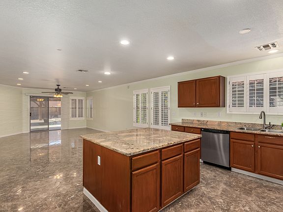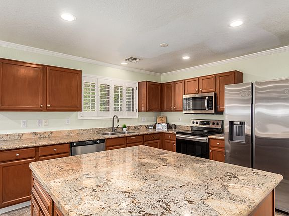 - Exterior features: kitchen island, spacious backyard