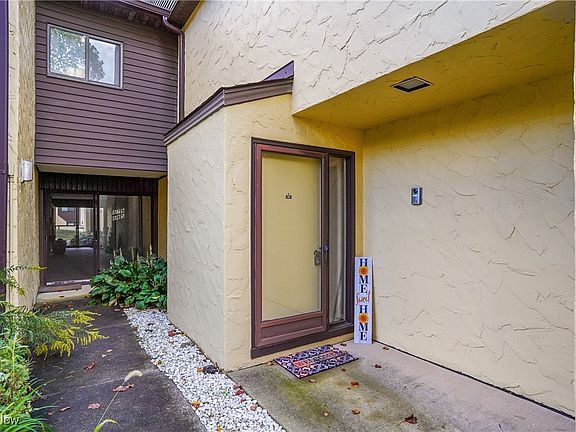 Wonderful townhouse/carriage house Condo in desirable Hampton Woods. Enter the foyer from the street or the attached 2-car garage. Once upstairs you basically have ranch living with large, carpeted living room/dining room combination with gas fireplace, pendant lighting and sliders to balcony/deck. The gorgeous updated kitchen has maple cupboards, granite countertops, stainless steel appliances, ceramic tile floor with eating area at the end by the window for natural light and view. At the end of the hall is the large, carpeted primary bedroom with a hall of closets leading to the ensuite primary bathroom which has step-in shower, granite counter vanity, ceramic tile floor and linen closet. The second bedroom is also carpeted with ceiling fan and double closet, and is across the hall from the main bathroom which has tub/shower combo and corian sink vanity. Also on the main floor is the laundry room with washer and gas dryer that stay, utility sink, built-in cupboards, storage closet, vinyl floor and even room at the end for a little desk/office area at the window. The attached 2-car garage has a water spigot and drain. Around the corner from the front door is a bonus storage closet in case all the storage inside the unit is not enough! The association has a clubhouse, tennis/pickleball courts plus an in-ground pool. The association fee includes internet/cable and trash. Home warranty is also included. Make your appointment to see it today and start packing. (Eating area table with two leaves and chairs can stay or go.)