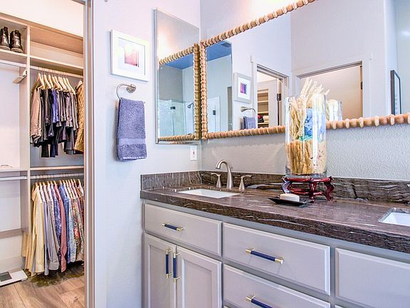 This charming single story located in a court location in Shadow Lakes Community! Kitchen remodeled in 2023 , Oversized Honed Leather Granite , Newer appliances, LVP flooring throughout Primary bath remodeled 2025, 2 other bathrooms redone, This Charming home is move in ready! Must see the pride of ownership! Enjoy coffee on the lovely porch! Or in the private terraced back yard! Hot tub is virtually staged. OWNERS HAVE INSTALLED ANOTHER FENCE AND HANDRAIL FOR THE STEPS IN THE BACK YARD OPEN HOUSE 10/26
