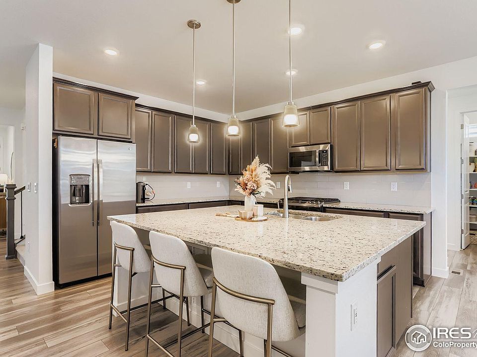 Welcome home to this beautifully designed 4-bedroom, 4-bath home nestled in the desirable Wildrose neighborhood of Erie. Built in 2021, this nearly new residence features an open-concept layout with upscale finishes throughout. The spacious main level boasts a bright great room that flows seamlessly into the gourmet kitchen, complete with a large center island, maple cabinetry, granite countertops, stainless steel appliances, and a gas cooktop. A dedicated tech center, walk-in pantry, and a private main-floor office with French doors add both function and style. Upstairs, you'll find a luxurious primary suite with dual sinks, a walk-in shower, and generous closet space, along with three additional bedrooms - including a Jack-and-Jill setup and a guest suite with its own full bath.Outdoor living is just as inviting, with a covered front porch and a covered back deck perfect for relaxing or entertaining. With a 3-car garage, full unfinished basement, and modern touches throughout, this home offers room to grow and live comfortably. Located minutes from parks, schools, trails, and shopping, and within a friendly community, this move-in ready home is a rare find that blends quality craftsmanship with everyday convenience.