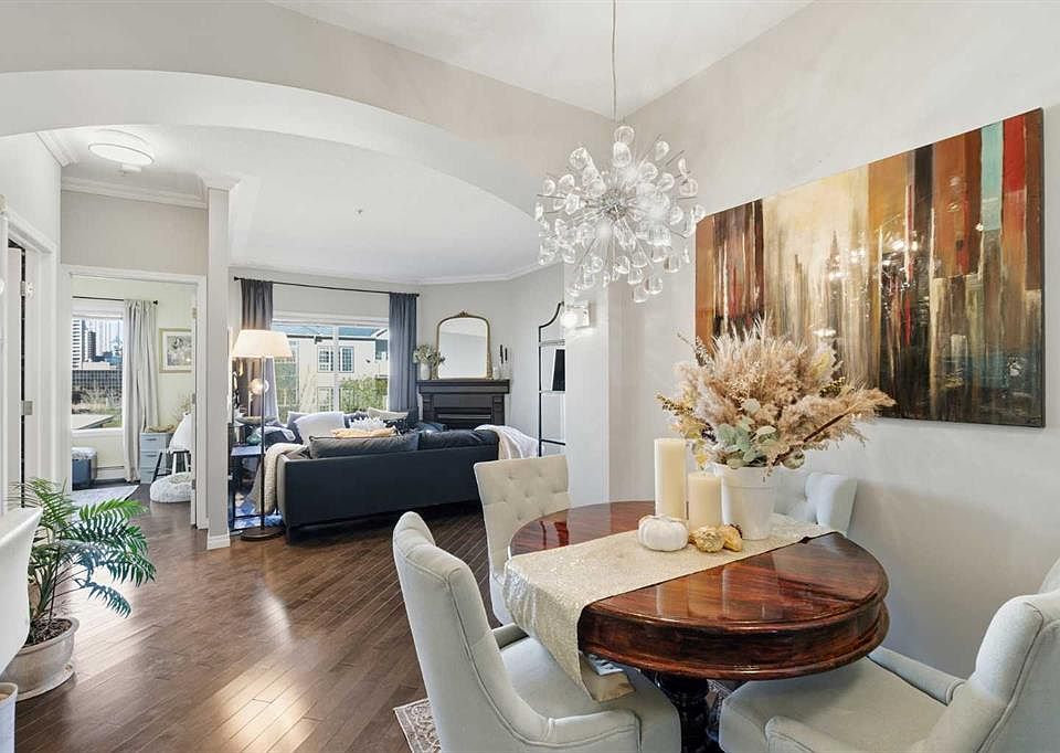 Experience sophisticated urban living in this beautifully upgraded 2-bedroom, 2-bathroom executive condo, ideally located with direct +15 access to GoodLife Fitness, London Drugs, top restaurants, and just steps from the boutiques and nightlife of 17th Avenue. Enjoy a highly walkable lifestyle with easy access to downtown and the Bow River Pathway system. This light-filled, modern residence features designer lighting, expansive windows, and an open-concept layout. The chef-inspired kitchen boasts a sleek peninsula island with eating bar, premium stainless steel appliances, classic subway tile backsplash, and timeless white cabinetry. An elegant dining area flows into the spacious living room, complete with a stylish fireplace and breathtaking panoramic city views. Step onto the covered balcony to enjoy morning coffee or evening sunsets year-round. The primary suite offers a luxurious retreat with a full private ensuite, while the second bedroom and full guest bath provide comfort and flexibility. Additional features include in-suite laundry, secure underground parking, and ample storage.Perfect for professionals or those seeking an upscale urban sanctuary—this home offers the ultimate in downtown luxury living.