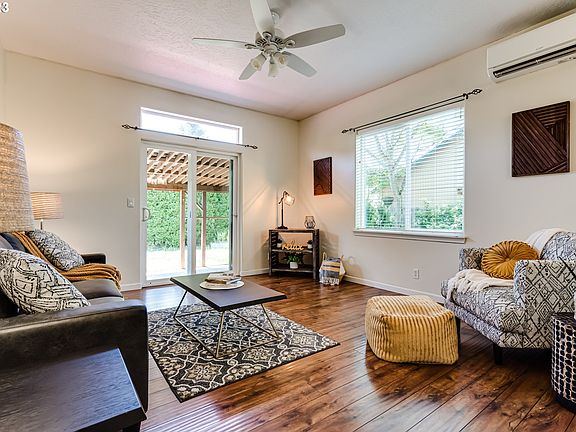 Welcome to this charming single-level home located in the fabulous Creswell neighborhood. As you step inside, you'll immediately notice the high ceilings that create an open and airy atmosphere throughout. The thoughtfully designed open floor plan seamlessly connects the living, dining, and kitchen areas, making it ideal for entertaining and family gatherings.Beautiful wood laminate floors grace the entire home, adding warmth and style to each room. The spacious primary suite is a true retreat, featuring not one but two closets, including a generous walk-in closet. The ensuite bathroom boasts double sinks and a luxurious walk-in shower, providing a private oasis for relaxation. New three head mini splits to keep you cool in the summer. Outside, you'll find a large yard with ample space for gardening, playtime, and outdoor enjoyment. A finished garage with work benches & its own mini split unit, the tool shed provides storage for all your gardening equipment and supplies & paved covered side yard. The covered patio is perfect for hosting barbecues or simply enjoying a peaceful evening outdoors. Don't miss the opportunity to make this house your new home. Schedule a showing today and envision yourself living in this wonderful Creswell gem!