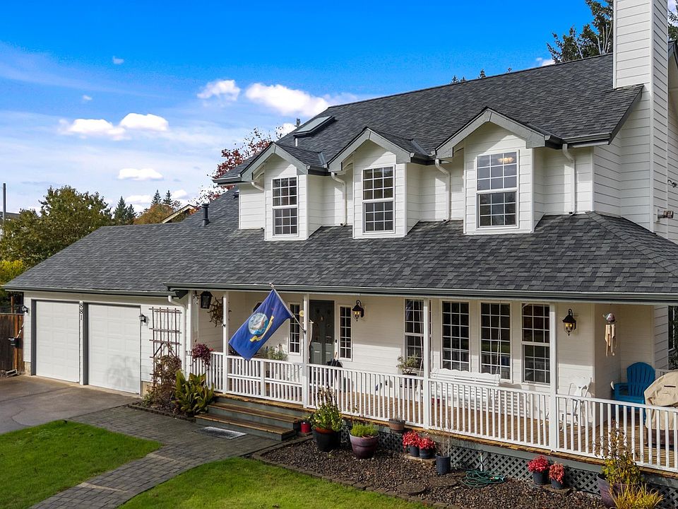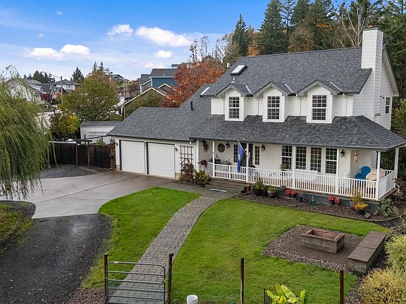 A perfect blend of country charm & in-town convenience! This beautifully updated farmhouse style home is on a large .52 acre lot with a circle drive. Inviting two-story home offers a flexible floorplan with an optional 4th bedroom (washer and dryer in closet). Updated kitchen features a granite island with prep sink and newer gas stove. Primary suite boasts a gas fireplace with tile surround, en suite bath with jetted soaking tub and walk in shower. Central Vac, new front porch deck and exterior paint. Raised garden beds, blueberry, and raspberry bushes, plus a cherry tree! Minutes from downtown Philomath and Corvallis.