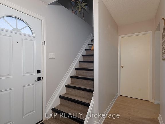 Welcome to Southpark Gardens - affordable living and a great location! 3 bedrooms, 1.5 baths, with bonus finished rec room. Fully fenced private patio - not directly backing on to other units (gazebo with weatherproof curtains included). New Furnace, AC and on Demand Hot Water Heater all owned and new 2022. Both bathrooms are freshly updated with new tub and shower insert. Newer roof and insulation - helping with comfort and utility costs. Large Rec room and separate laundry area with plenty of extra storage space in basement. Conveniently located in desirable Westminster, close to schools, trails, shopping, parks, transit, and access to highway 401. One parking space is included with the unit and additional parking requests can be made through the property management. A smart choice for first-time buyers, empty nesters and investors alike seeking value.
