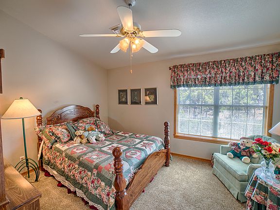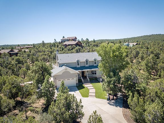 LOWEST Price in highly desired SIERRA PINES subdivision. 5 beds - 3.5 baths on .99 acres. This custom home has tremendous pride of ownership. The home has fabulous curb appeal and sits well off the street high on a hill on one private acre. There is ample space between you and your neighbor. As you go down the long concrete driveway and approach the house you will walk across the covered TREX deck/patio and enter thru the front door. The first thing you will see is the grand foyer with it's beautiful wood floors and gorgeous custom curved oak staircase to the second level. This five bedroom. 3.5 bath home has three spacious levels. The main level is built for entertaining. It has a huge gourmet kitchen, a Cook's dream! There is beautiful granite countertops, a large island and a pantry. Lots of custom cabinets with tons of storage and great lighting. There is also a small eating area and room for three or four bar stools at the island. There are two living areas with a formal living/dining room and a family room which is open to the kitchen with a fireplace and French door access to the two level TREX deck with gas BBQ. The south wall of the family room is mostly windows out to the deck. The views are perfect for viewing wildlife that visits regularly. It is not unusual to see elk, deer, javalina, raccoons, squirrels and rabbits as they roam the natural habitat. Other features on the main level are a mud room with two doors that access the garage and the outside. The two car garage has high ceilings and room for lots of storage. Up the staircase you will find four spacious bedrooms. The Master has two large closets, bath with jetted garden tub and separate shower. French door leads to a private balcony with views of the entire Show Low area. It is a perfect place for morning coffee and wildlife viewing. There is an additional three bedrooms and a full bath on upper level. Downstairs is a fully finished basement with another spacious bedroom and large full bath. In addition, there is an office/game area, large laundry room, two storage rooms and a workshop with door to outside. There is a concrete walkway to the door from front of house for easy access. This home is a must see, incredibly well cared for with many upgraded features: including wood framed out windows, central vacuum on all floors and in the garage. It has tons of storage, new carpet, new heating system with tankless water heater. There is a long concrete driveway, beautiful well kept landscaping with sprinkler and drip system. As well as a manual operated Sunsetter awning in the back deck to extend the shade Furnishings Available Outside Of Escrow Come live in the White Mountains and view wildlife from your front or rear porch. The White Mountains has four beautiful seasons where you can breathe in the fresh mountain air and enjoy the 40 lakes and over 600 miles of rivers and streams. In addition to amazing fishing, this area has one of the most extensive trail systems in the southwest for hiking, biking, horseback riding, quading and more. Sunrise Ski resort is only about an hour away with three beautiful mountains to ski, snowboard or sled. If shopping is your interest, you will love the antique stores, Farmer's Market and the multitude of arts and craft shows that happen all summer. The music festivals have something to fit everyone's enjoyment. Love to golf? There are seven amazing golf courses, three are public. The White Mountains ... it is the best kept secret in Arizona!