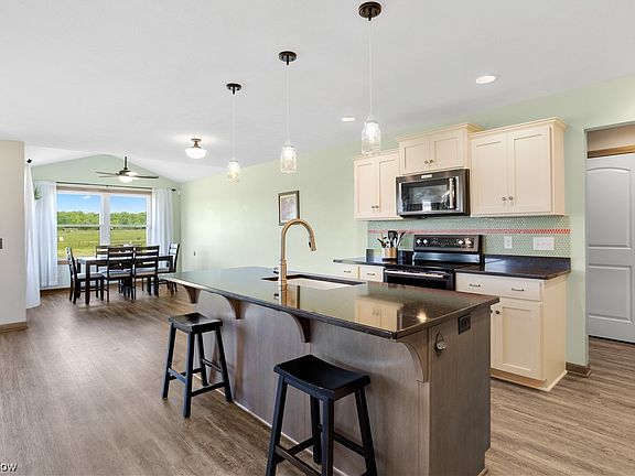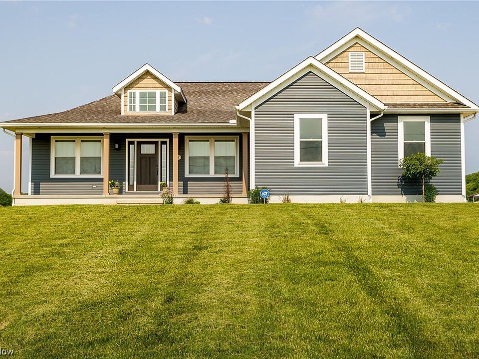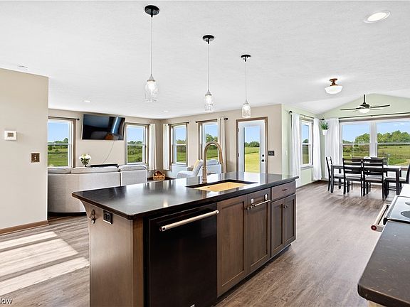 Welcome home to this recently built ranch with gorgeous views. As you enter the cathedral ceiling entry, you'll immediately fall in love with the open feel and sunlit space. The wooden coat rack stays! To your right is the office (which could be a bedroom) that overlooks the front yard and to your left is the 2nd bedroom with adorable light fixture! Next to the second bedroom is a full guest bath. Entering further, the home opens up to the kitchen, great room and sun room. Windows galore greet you and every window holds a unique view at all times of day and evening. From the garage entrance, you'll see a roomy mudroom with closet and built in bench/hall tree. The kitchen boasts granite countertops, stainless steel appliances and large island with sink! The master (more beautiful views!) is just past the mudroom and connects by barn slider door to the master bathroom. Please don't miss this master bath with marble countertop and adjacent walk-in closet Sellers recently insta