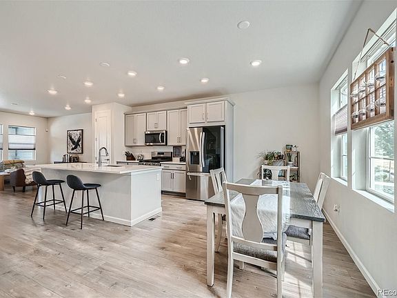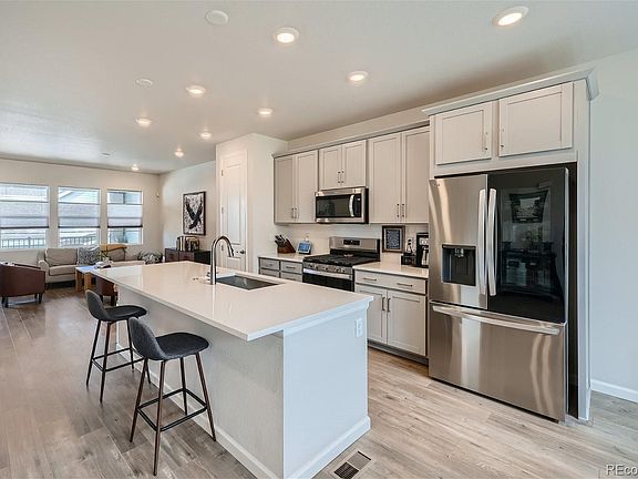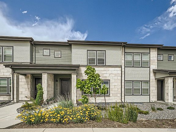 Elegantly designed townhome in the desirable Sterling Ranch community. Experience a thoughtful, spacious layout with a main floor pocket office and oversized covered patio. The kitchen is bright and open with abundant natural light, white quartz countertops and stainless steel appliances. New window coverings and luxury vinyl flooring throughout. The primary suite features mountain views, a double bathroom vanity and a large walk in shower. Down the hall are two additional bedrooms, a second full bathroom and a separate laundry room with built in shelving. The unfinished basement is ready for your final touches. Enjoy the community coffee house, brew pub and Providence Village Recreation center, with two pavilions and an outdoor pool. Sterling Ranch offers engaging weekly and monthly events for residents along with 30 miles of walking trails.