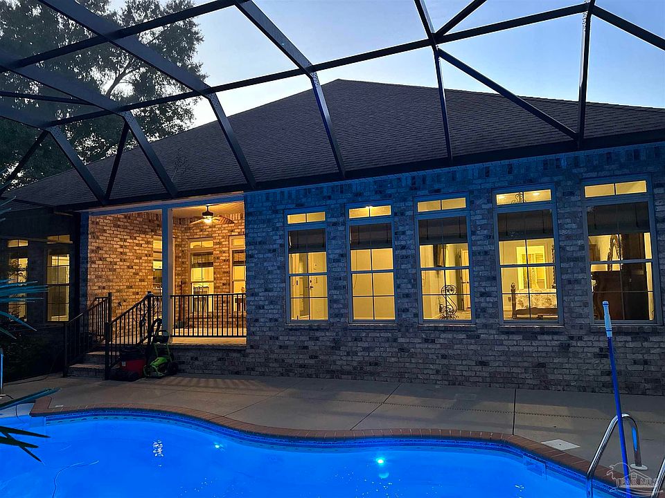 OPEN HOUSE Dec 17 FROM 1- 4. Custom Luxury POOL Home with 4 bd/2.5. Built by respected custom home builder in highly desirable gated neighborhood of Nature Trail. One of Pensacola's finest communities with natural surroundings and desirable amenities which include a community pool, tennis courts/basketball court, playground, fitness facility, walking trails throughout 400 acres of conserved land. Residents enjoy a 24hr. guard gated security. This home has a full yard sprinkler system. Whole house security monitored by Redwire which can be assumed by Buyer for $37.95 per month. Landscape lighting whole yard on a timer. Stone path to the back yard and enjoy your private backyard. Huge upgrade paver driveway. Rich Hardwood flooring, Wine Cooler in kitchen and Upgraded granite countertops. Ceiling Fans throughout the house. 12 foot ceilings give you a feeling of spaciousness. Large pantry and utility room. All closets have lights. Upgraded Huge Master Walk in custom closet with a window seat and ceiling fan. Also mans closet is adjacent to half bath and huge master bedroom and sitting room which has pool access. Natural gas line for your BBQ while you enjoy your screened in porch. Huge Formal dining to entertain all your family and guest. Relax in your luxury Pool with water fall surround by decking. Pool enclosure is extra large. Bali Blinds for master, living room, master bath, guest bath and breakfast nook. Elegant Custom front door and side lights provide a rich presentation as you enter this custom home. Hallways are wider than normal. Large kitchen with upgraded cabinets some with glass doors with Plenty of electrical outlets. Gas Fireplace with stacked stone and hearth provides the perfect atmosphere to sit and relax while watching TV. Two separate screened in porches to escape to your backyard. Amenities from HOA. Tennis Courts, Club House with full kitchen and BBQ Grills. Pool & a kiddie pool. Basket ball court. Fitness room.